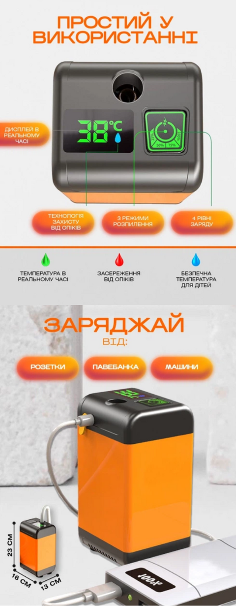 - ✔️ Цифровий дисплей з відображенням температури та заряду